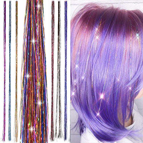 47 Holographic Hair Tinsel Shining Rainbow Professional Sparkle Heat Resistant Silk Extensions Easy To Apply Hair Accessories For Girls Party Hair Gifts For Girls 400 Strands Shining Walmart Com