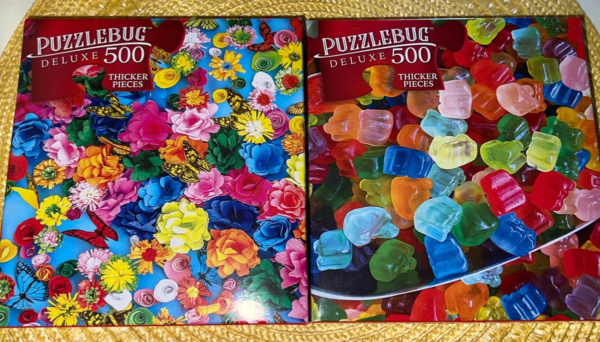 2 X Puzzlebug 500 Piece Colorful Paper Flowers Gummy Bears Puzzle Lot Sealed Ebay